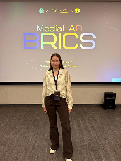 A student of the Baikal School of BRICS, Elizaveta Solovyova, took part in the international academic and educational program MediaLab BRICS, held in Nizhny Novgorod from 29 March to 2 April. Young media professionals from BRICS countries explored the latest trends in the media landscape, mastered science communication tools, and developed their own projects.