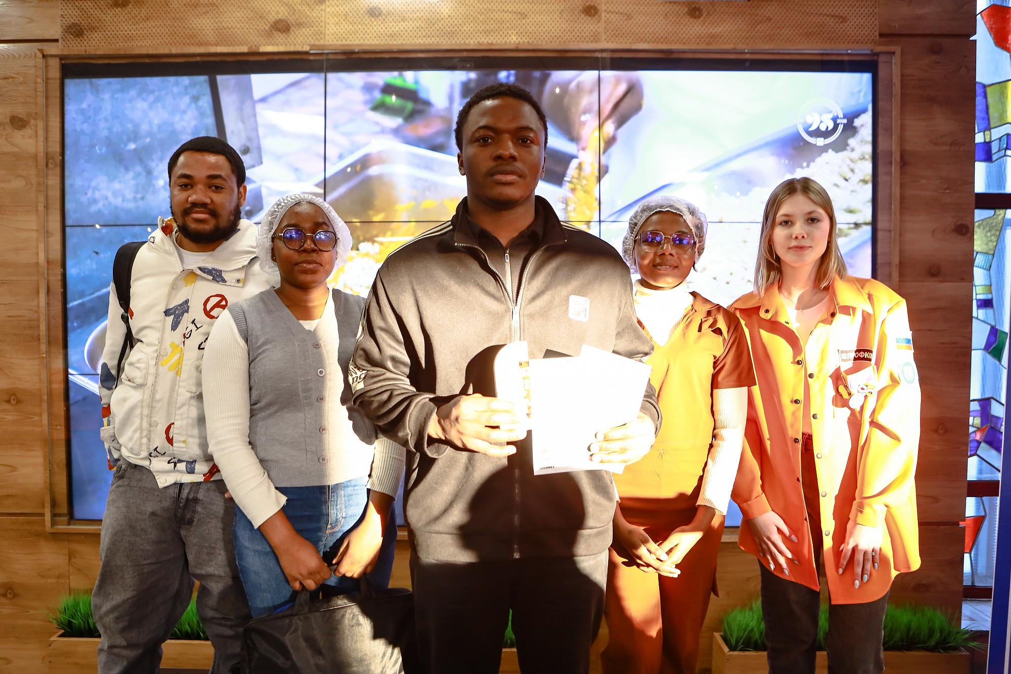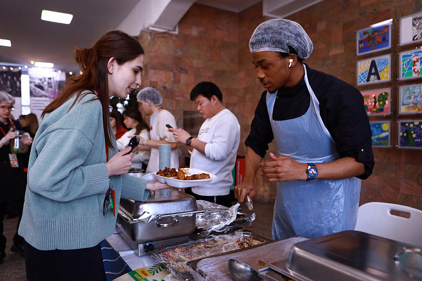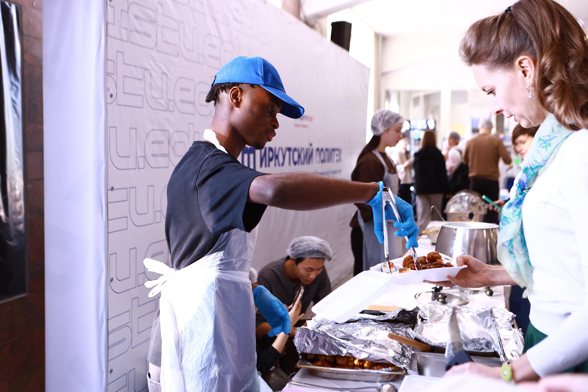 First-year student Tukur Isah Ibrahim works as a cook in an Irkutsk restaurant chain. The Nigerian decided to showcase his culinary skills to the festival guests through his own take on Russian cuisine. He supervised a group that prepared Pozharsky cutlets with a crispy breading.