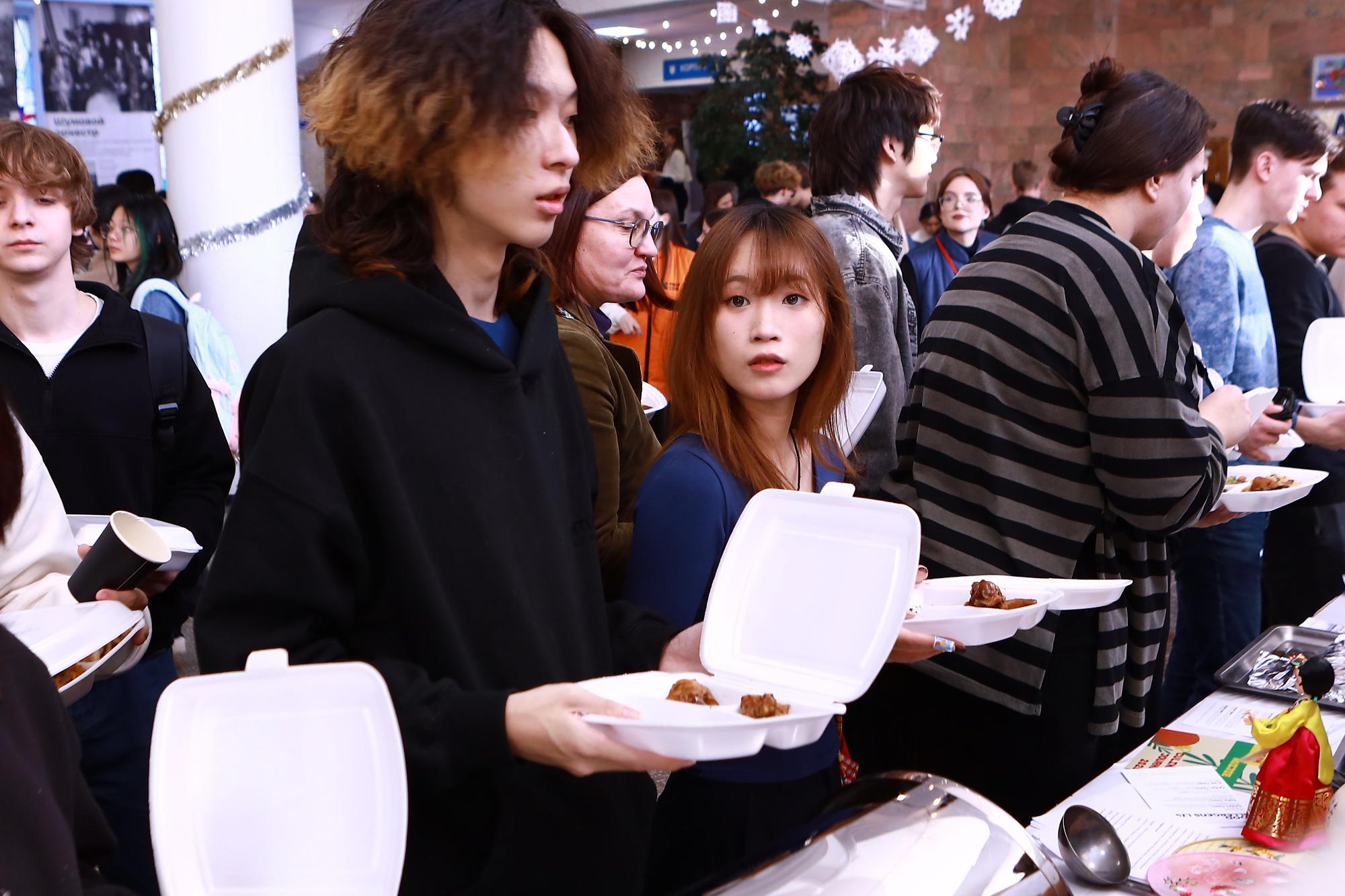 The Eastern exotic fare was complemented by sweet and sour beef (bulgogi) and gimbap – a popular Korean roll made of seaweed sheets filled with rice and omelet. These snacks were prepared by a group of Russian students learning the Korean language.