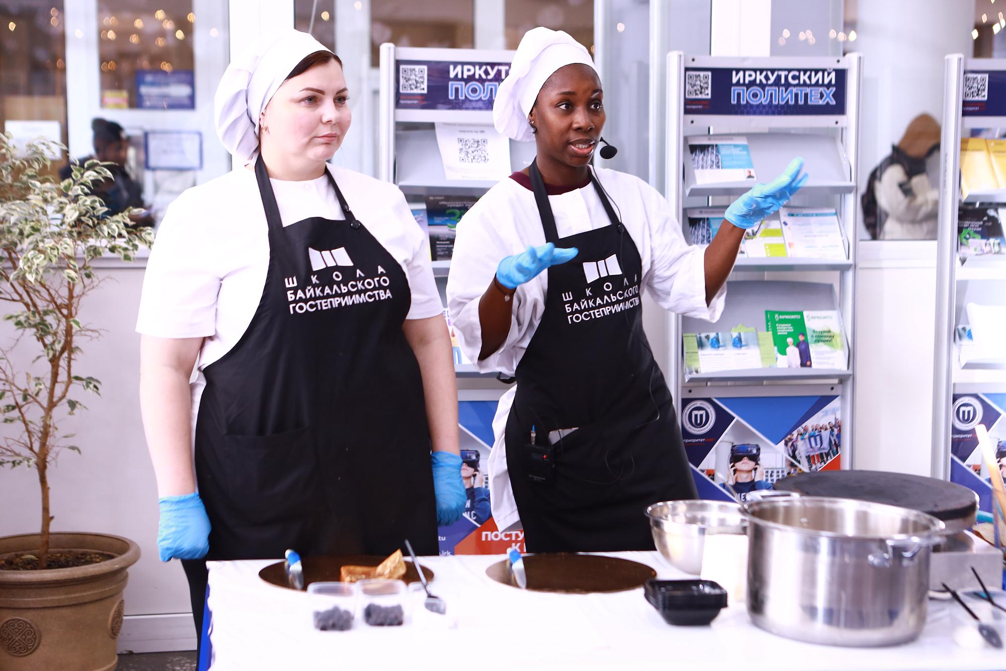 The "Culinary Journey – 2025" festival was held at INRTU, bringing together the gastronomic traditions of Russia, Asia, and Africa. Students impressed guests with enoki mushroom shrimp, chicken marinated in cola, Turkmen pilaf, and citrus tea with caramel. At a master class run by the Baikal Hospitality School, attendees could try their hand at making pancakes with berries and cream cheese.