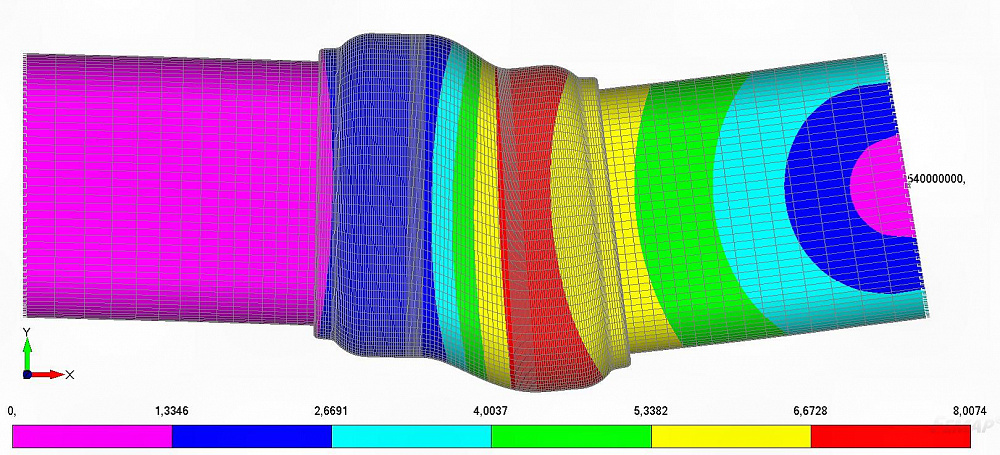The first project carried out in the interests of IOC focused on studying the strength of fiberglass insulating inserts used in pipelines. The researchers simulated their behavior under load while taking into account key operational factors, including material properties, temperature fluctuations, internal pipe pressure, and displacements of reference points along a specific pipeline section. For this, INRTU team used specialized software. The ultimate goal of the study was to identify the causes of ins ert damage. The mathematical models incorporated actual mechanical properties of the materials, determined through laboratory testing at the INRTU Research Laboratory of Testing of Building Materials and Structures.