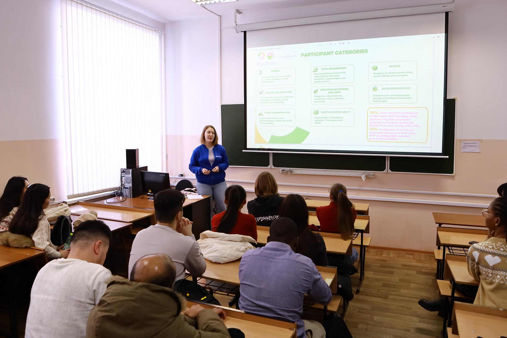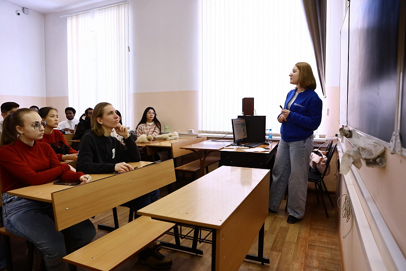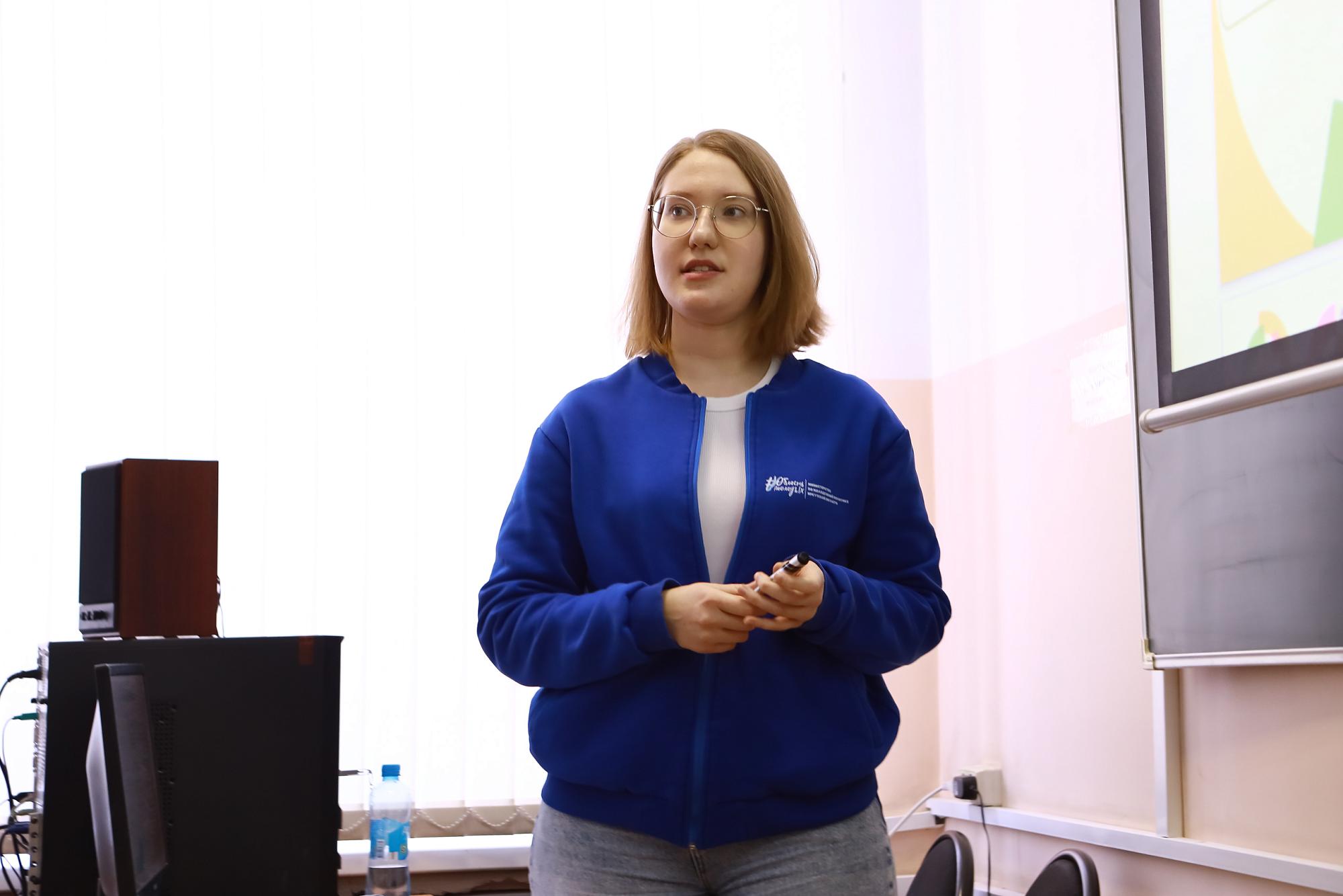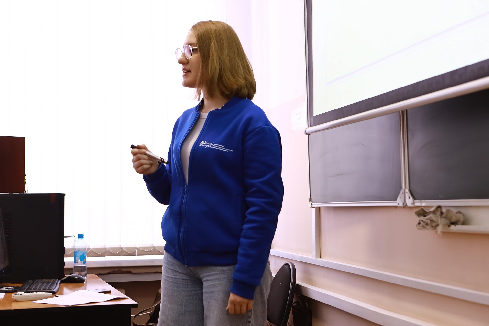 A representative of the Ministry of Youth Policy of the Irkutsk Region, Alexandra Kuznetsova, informed students about the registration procedures not only for participants but also for volunteers: