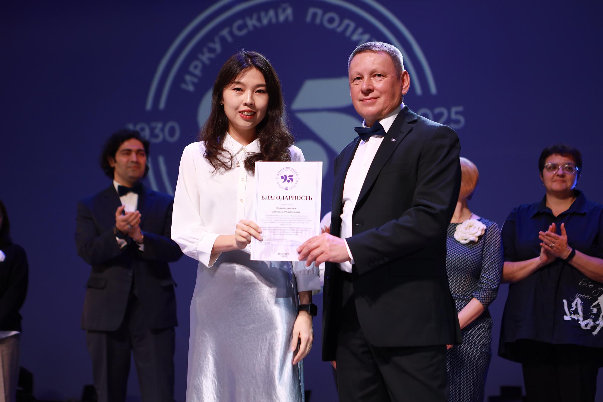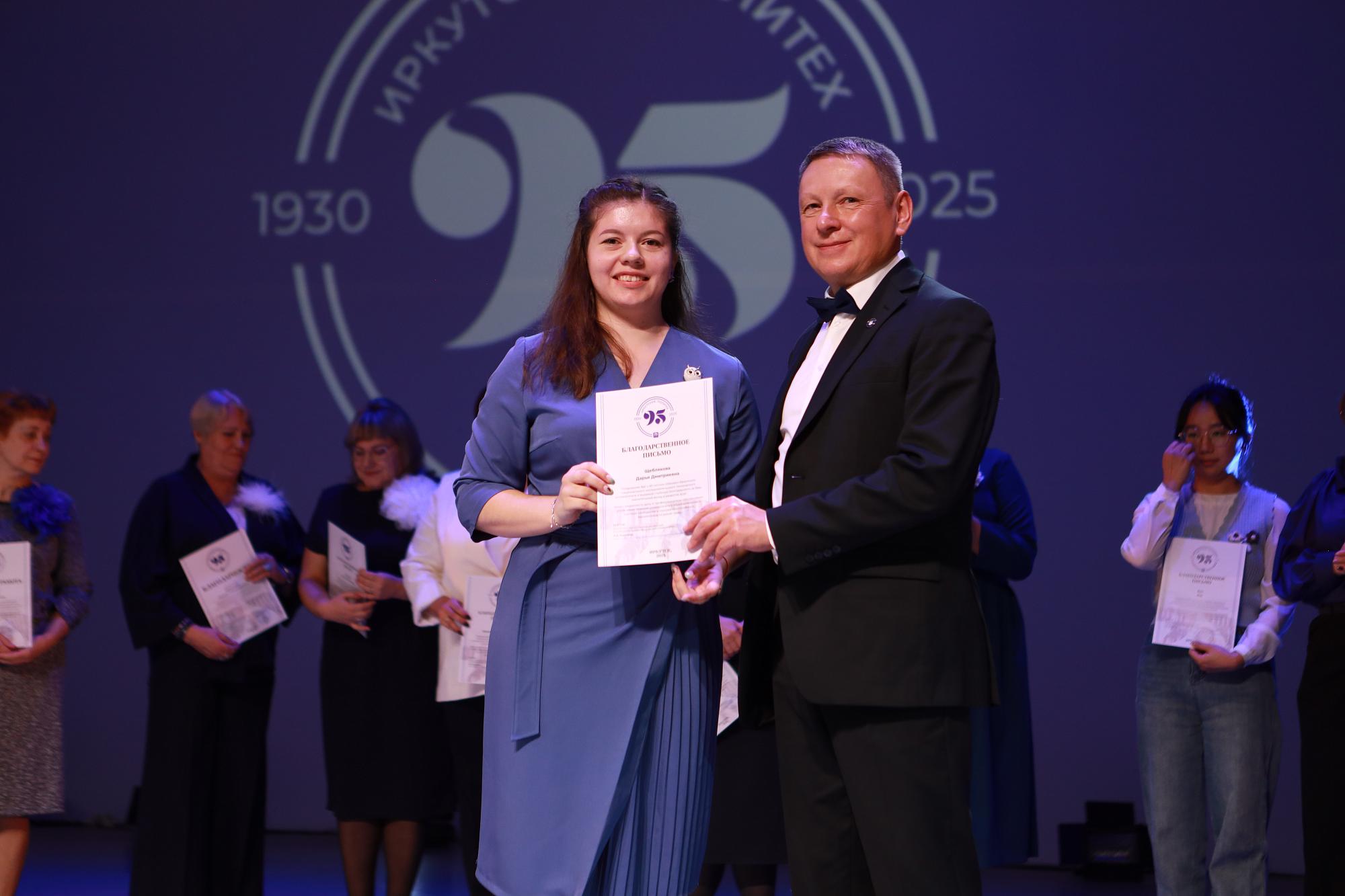 Daria Lobanova was presented with a letter of gratitude from the Rector and an honorary certificate from the Ministry of Youth Policy of the Irkutsk Region. She has been working at INRTU since 2017 and for the last three years has held the position of Vice-Rector for Youth Policy.