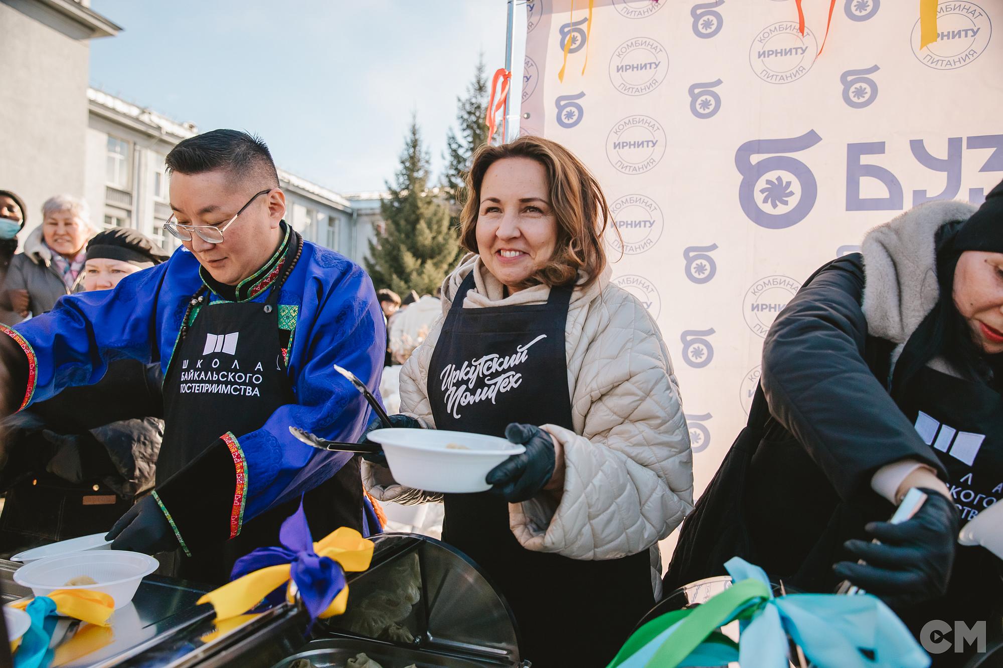 The INRTU Student Campus prepared a traditional fair for the festival's guests. The Baikal Hospitality School, the University's Catering Centre, and the university cafe “Buuzy Vuza” set up Russian and Buryat-Mongolian food stations. Students were treated to buuzas, blinis (pancakes), syrniki (curd cheese pancakes), shangi, and traditional white foods.