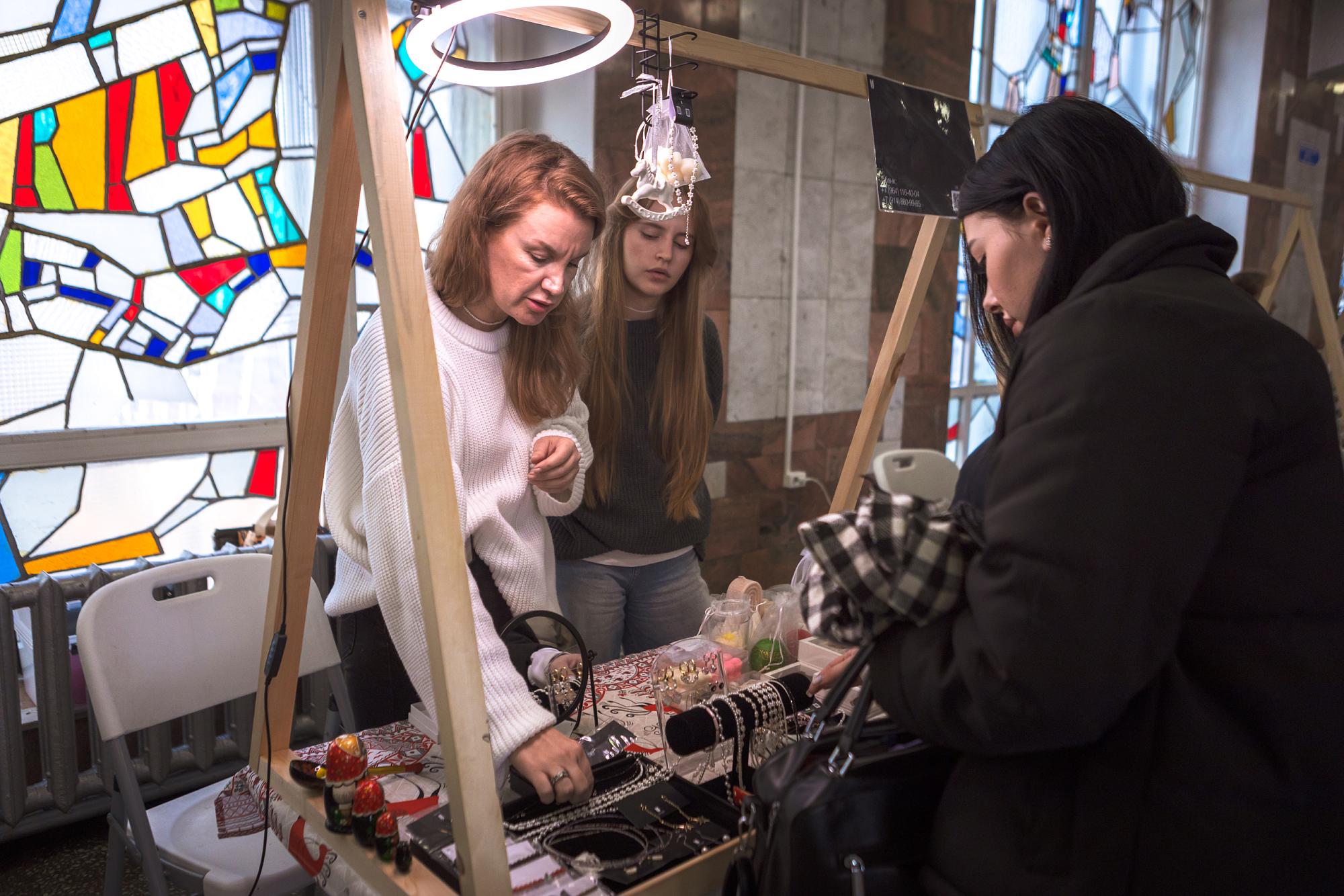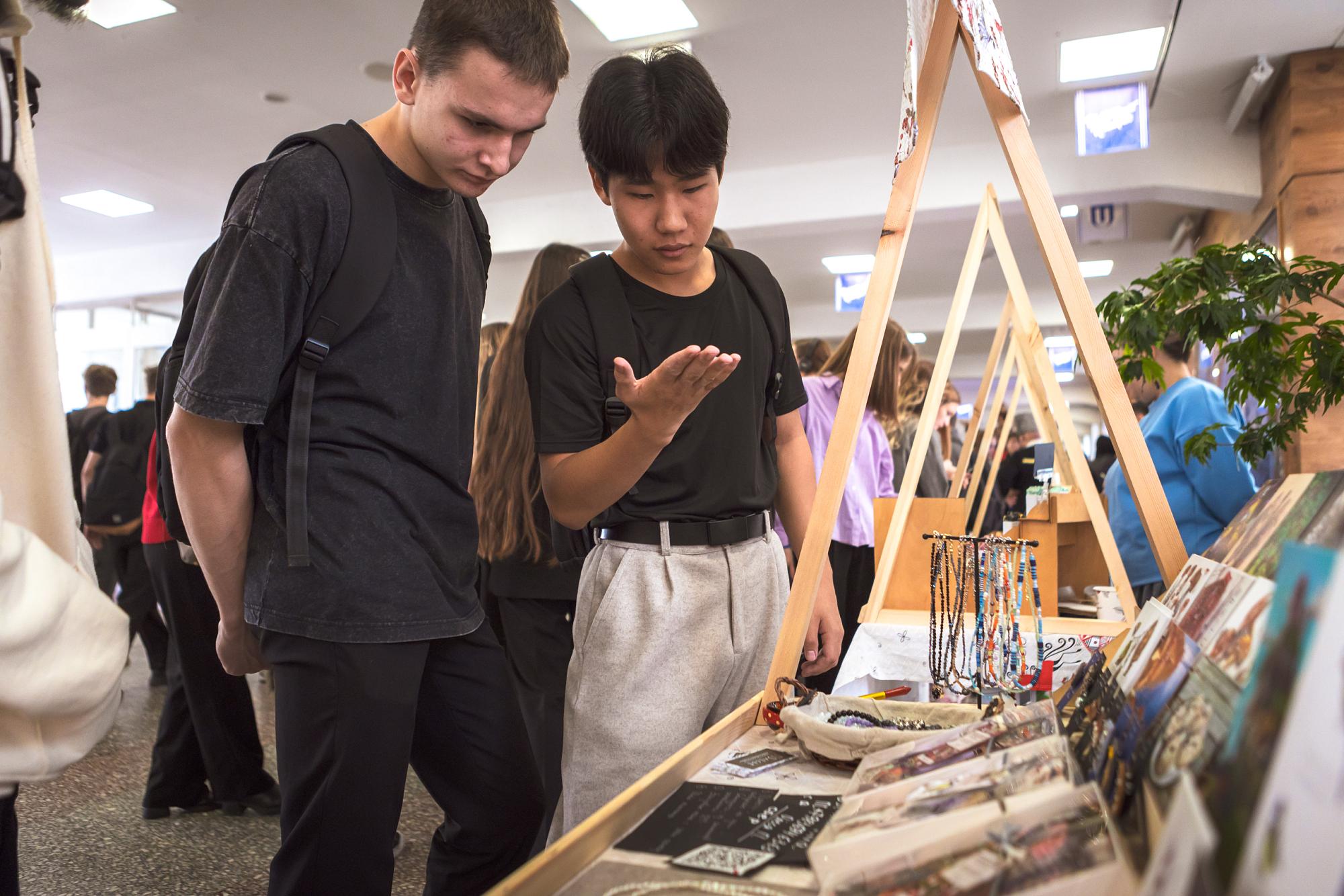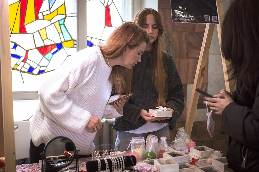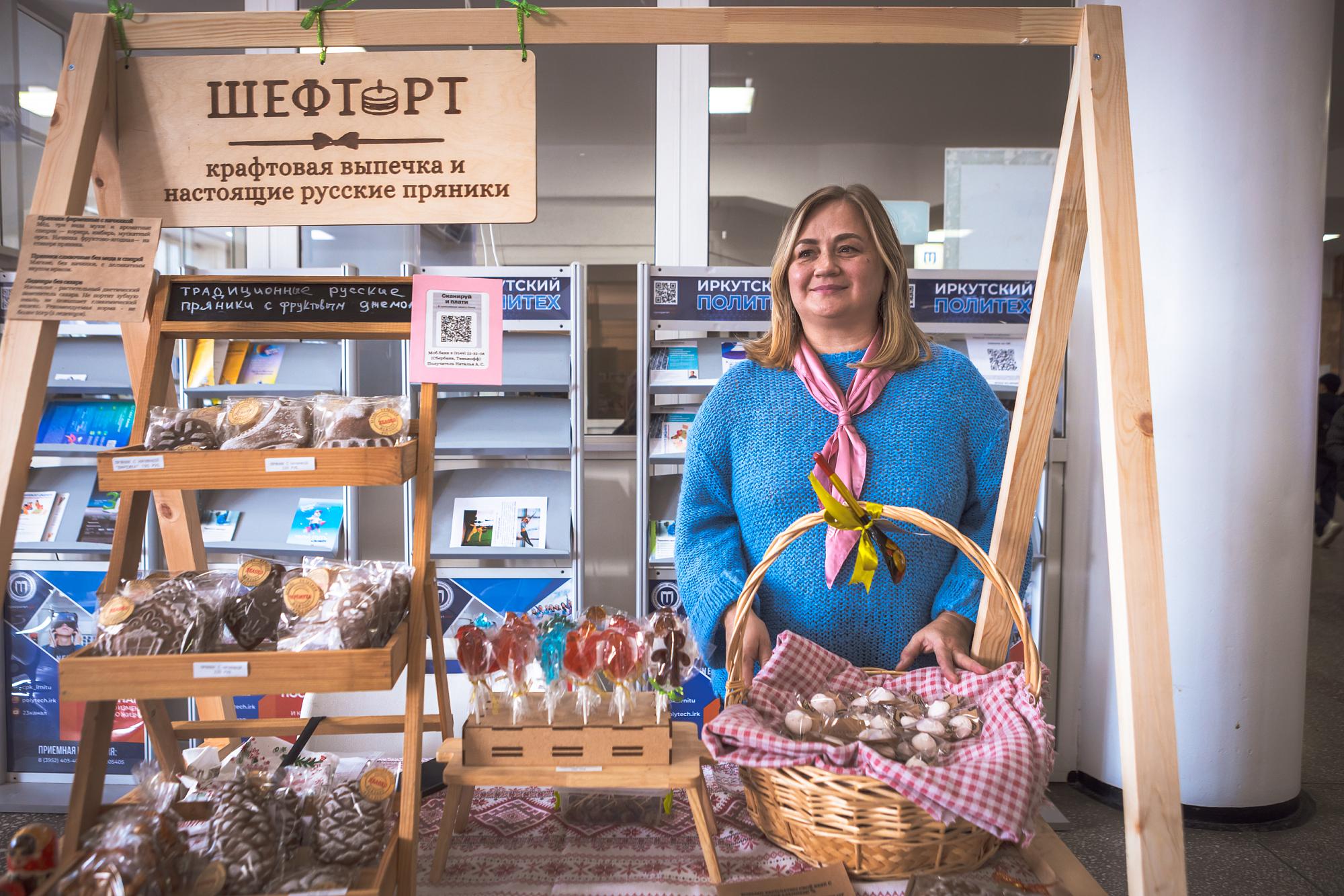 A fair of Irkutsk artisans and master classes were organized in the university hall. Attendees could purchase jewelry made from precious stones, glass, and polymer clay, as well as gingerbread, honey, and pastila (fruit leather). Those who enjoy pleasant scents could find handmade candles and perfumes.