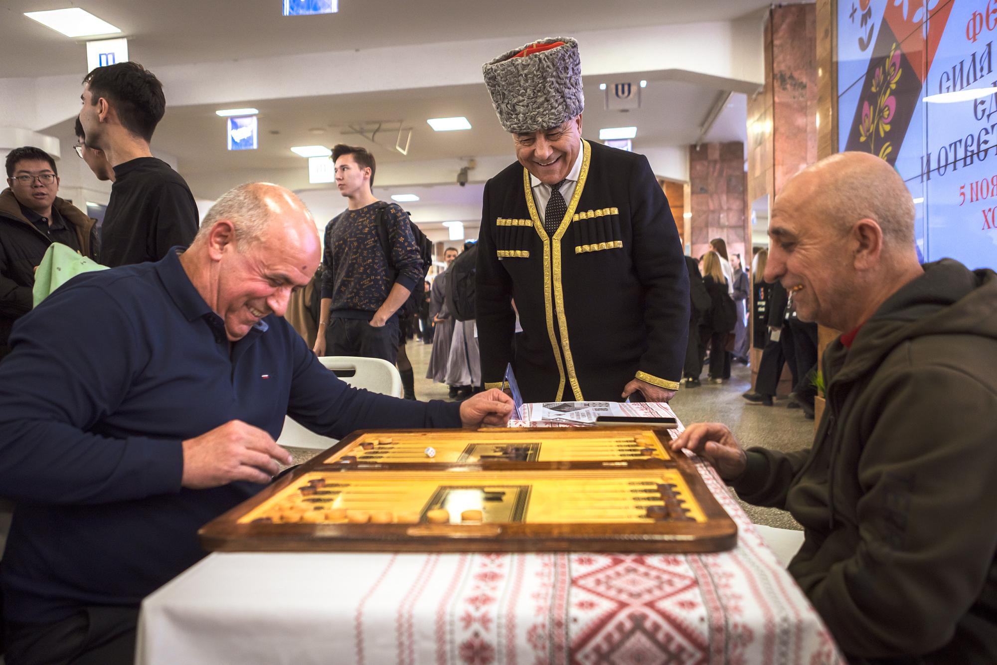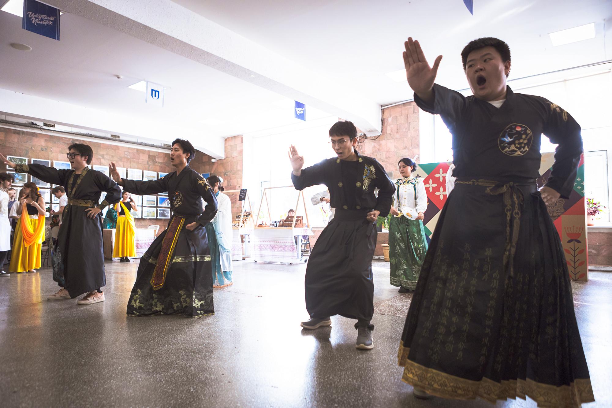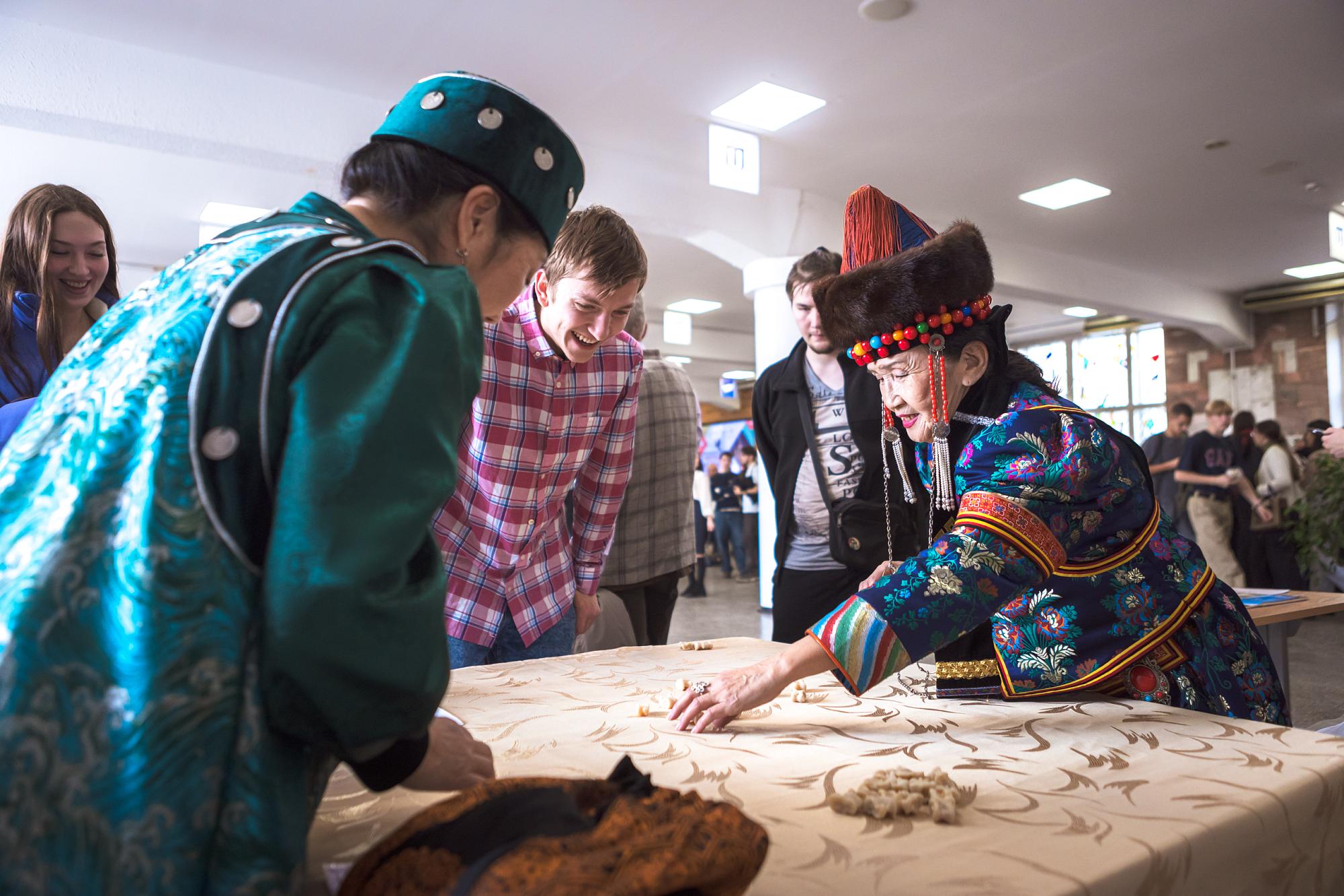 Particular interest was drawn to the Center of Buryat Culture zone, wh ere students could learn about the traditional Buryat and Mongolian dice game “Shagai Naadan”. The bones, in certain positions, symbolize five types of animals (sheep, goat, cow, horse, and camel). The game required dexterity and strategic thinking to collect the most bones.