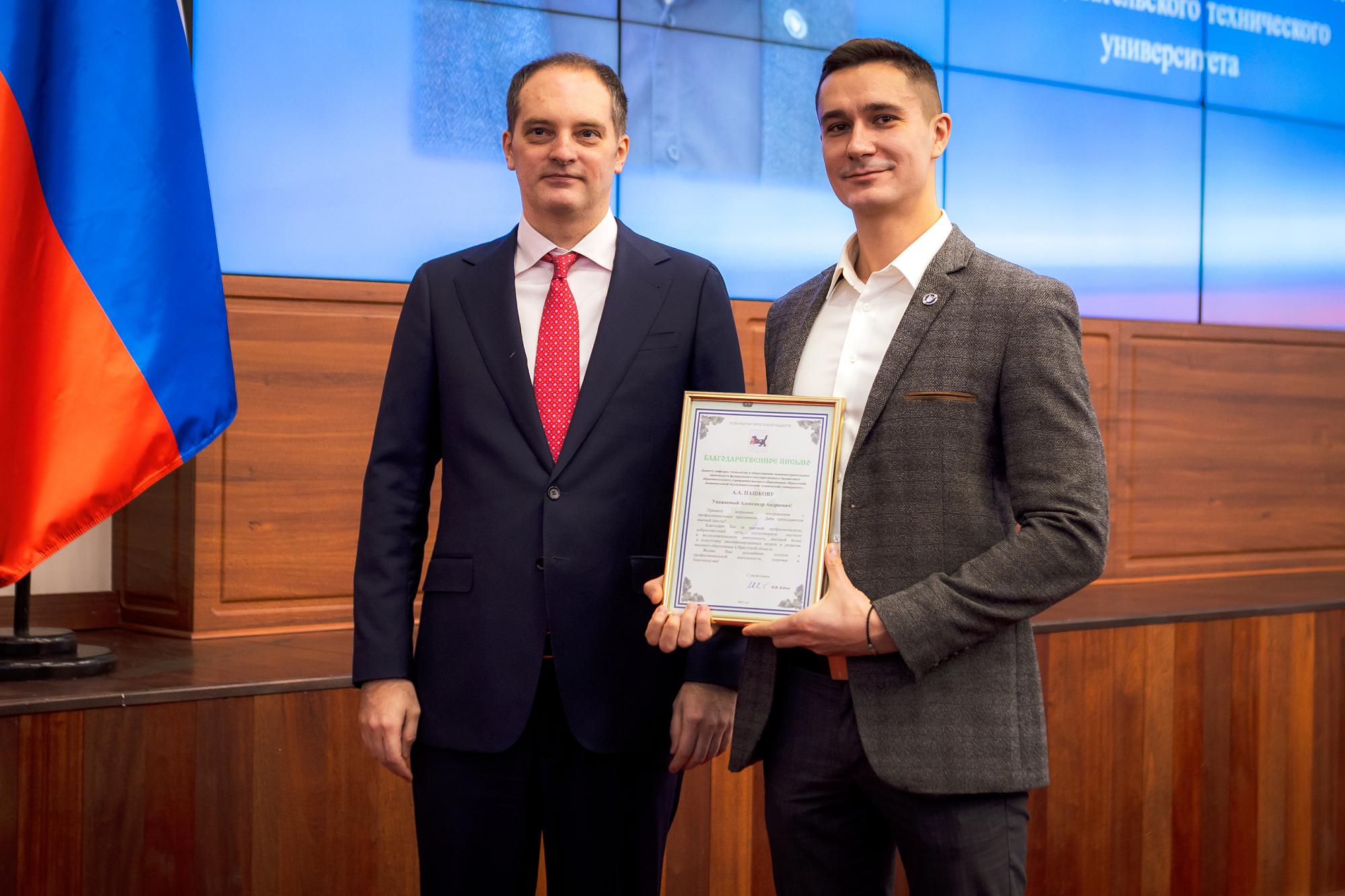 Associate Professor of the Department of Technology and Equipment for Machine-Building Production Aleksandr Pashkov was awarded a letter of gratitude from the governor. He is a 2014 graduate of the School of Aircraft Construction, Mechanical Engineering and Transport of INRTU. In 2018, he completed his postgraduate studies at INRTU, defending a dissertation on “Improving the process of shaping sheet parts of double curvature on contact-type shot blasting installations”.