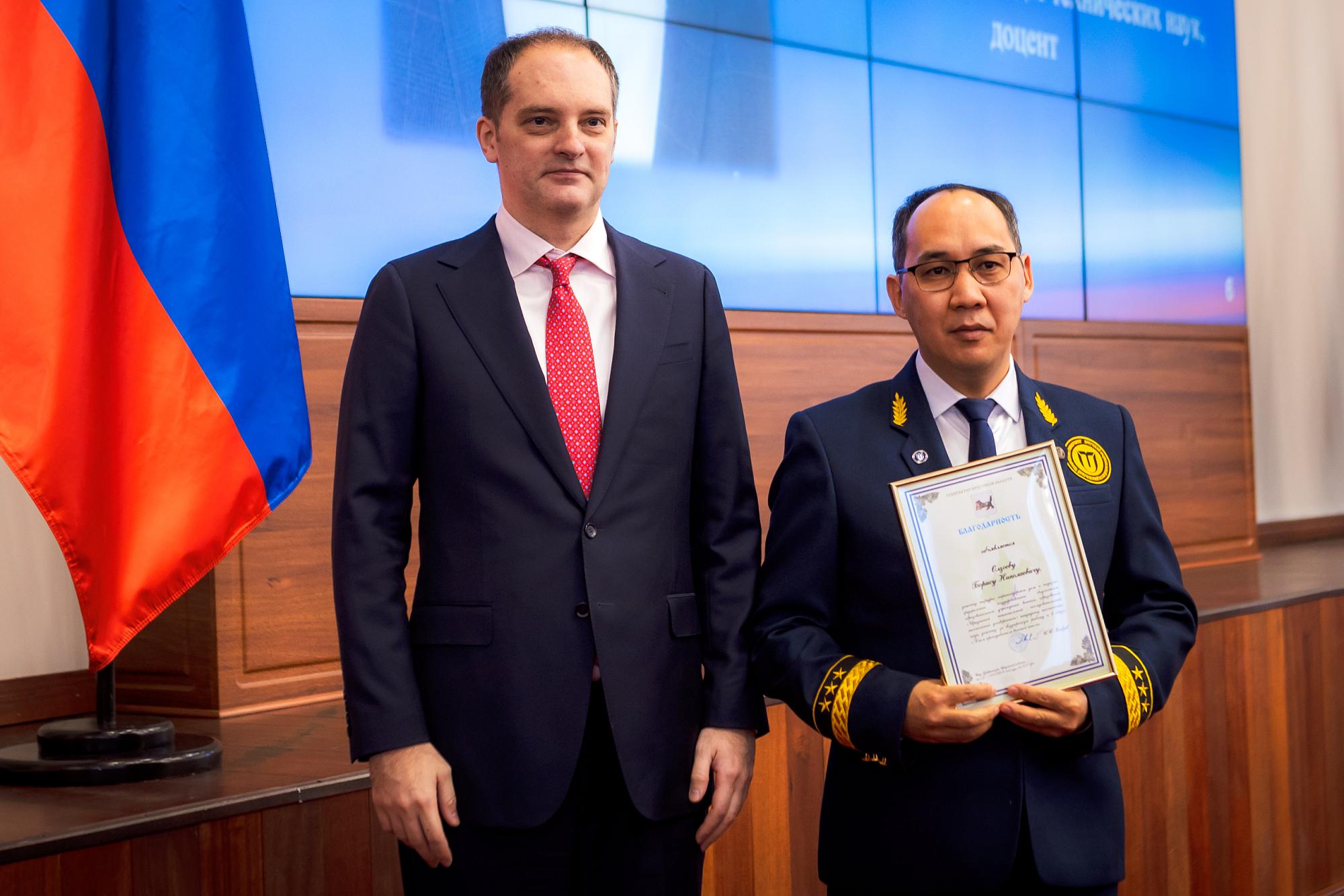 The Governor’s gratitude was presented to Boris Olzoev, Associate Professor of the Department of Mine Surveying and Geodesy, Deputy Director Deputy Director for Foreign Affairs of the School of Subsurface Resource Management. He received a cartographer’s diploma in 2006. Since graduating from university, he has worked in the higher education system at his alma mater.